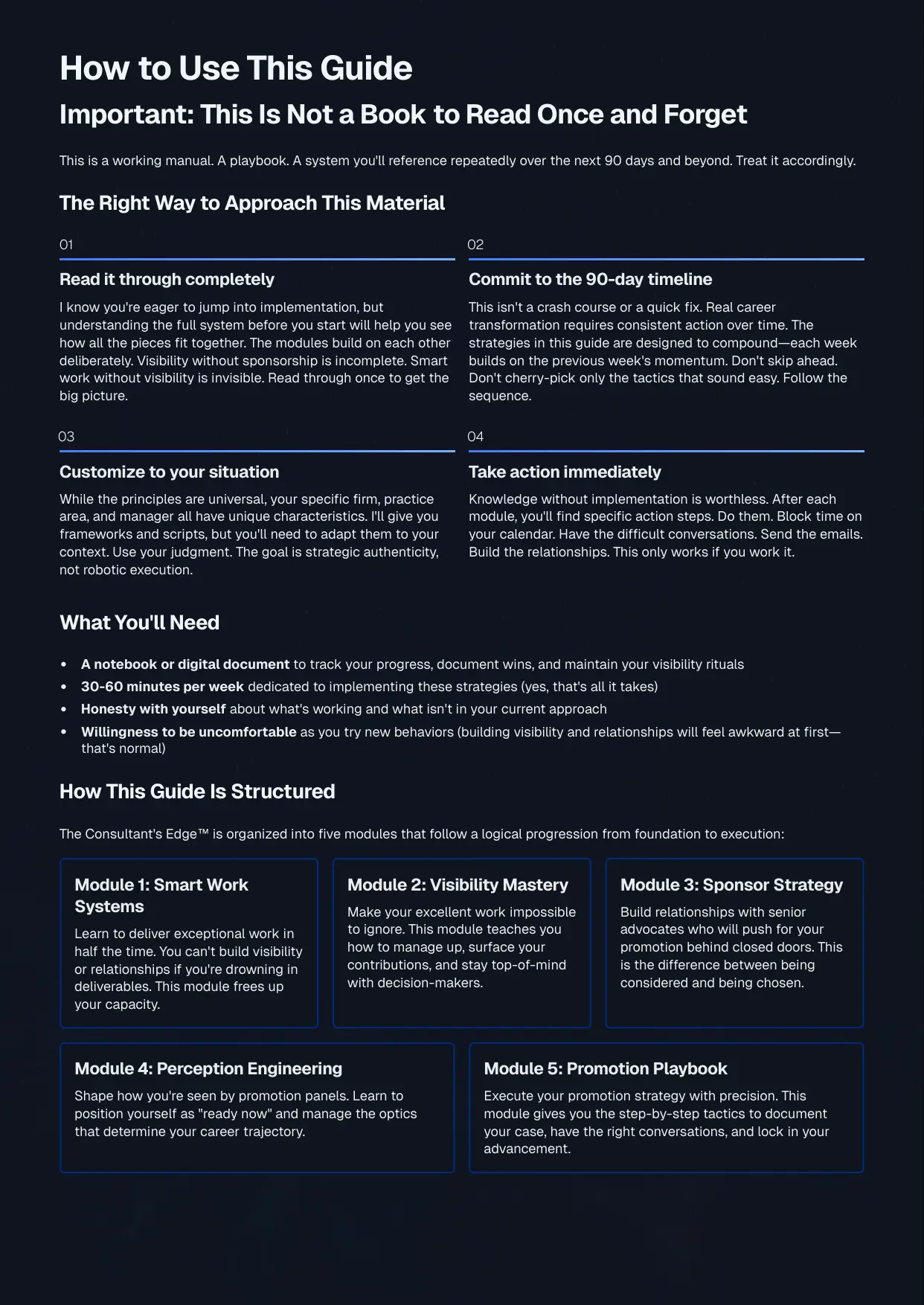 Not theory. Not fluff. Every page is built around real consulting environments — with scripts, frameworks, and step-by-step systems you can use immediately.