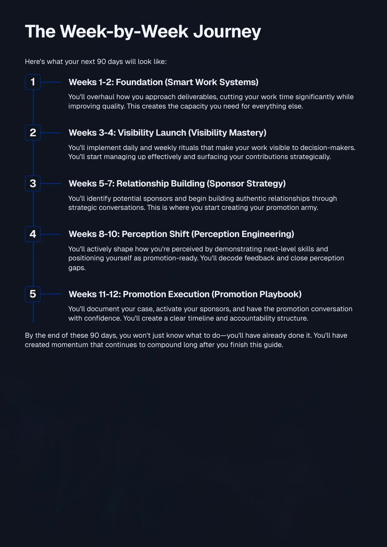 A 90-day system to cut overwhelm, deliver smarter (not longer), and build a reputation that gets you noticed—even if you've been quietly crushing it and still getting overlooked.